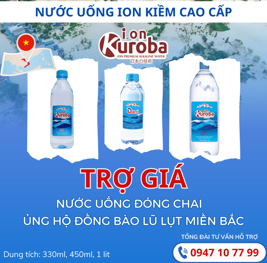 Dành cho MTQ muốn ủng hộ chuyến xe 0Đ. NƯỚC UỐNG ION KIỀM CAO CẤP KUROBA - NƯỚC UỐNG ĐÓNG CHAI CAO CẤP DANI cam kết Trợ Giá và hỗ trợ giao hàng với tất cả đơn hàng ủng hộ đồng bào lũ lụt Miền Bắc.