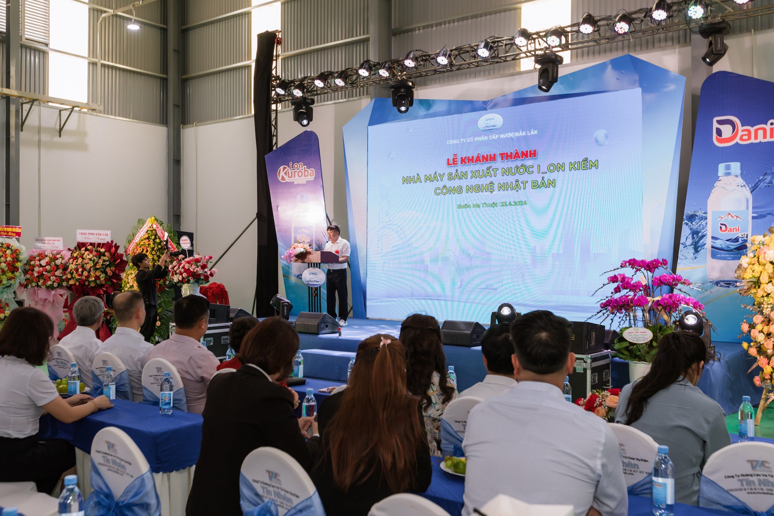 Khép lại buổi lễ khánh thành, ông Nguyễn Khắc Dần – Tổng Giám Đốc Công ty cổ phần Cấp Nước Đắk Lắk - cho biết công ty đề cao tiêu chí chất lượng và luôn hướng đến sức khỏe của người tiêu dùng. Trong đó, nước uống ion kiềm cao cấp Kuroba tự hào là một trong những sản phẩm chứa hàm lượng kiềm 8.5 – 9.7 được xử lý 100% bằng công nghệ Nhật Bản, sẽ giúp trung hoà Axit trong cơ thể về trạng thái lý tưởng. Nước uống đóng chai cao cấp Dani có các khoáng chất cần thiết cho cơ thể như: Natri, Magie, Canxi, Kali,... xử lý bằng màn lọc Nano công nghệ Mỹ là sự lựa chọn hoàn hảo duy trì cuộc sống khoẻ mạnh, tái tạo tâm trí và cơ thể.