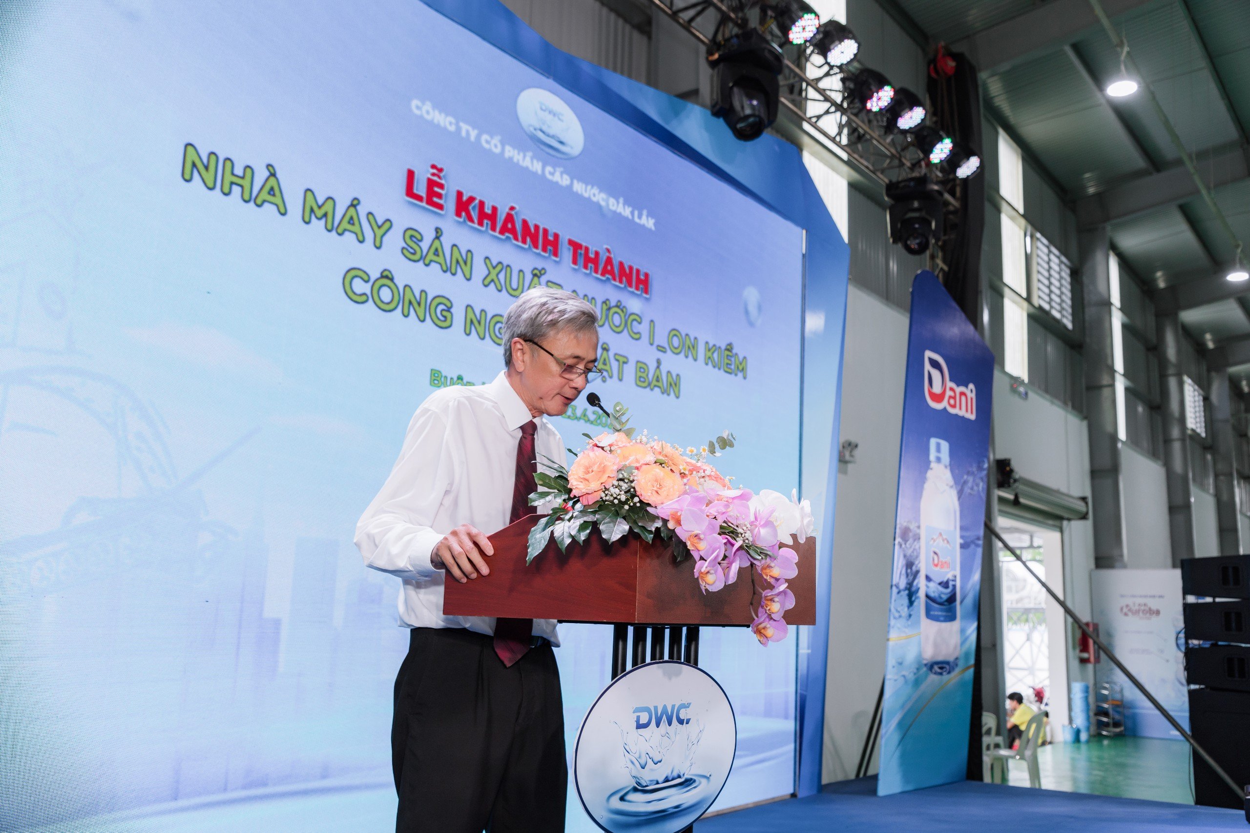 Phát biểu tại buổi lễ khánh thành, ông Đỗ Hoàng Phúc - chủ tịch HĐQT Công ty cổ phần Cấp nước Đắk Lắk - gửi lời tri ân sâu sắc đến đại diện chính quyền địa phương các cấp đã tạo điều kiện để dự án xây dựng NHÀ MÁY SẢN XUẤT NƯỚC ION KIỀM CÔNG NGHỆ NHẬT BẢN được hoàn thành đúng tiến độ, qua đó góp phần tạo thêm điều kiện việc làm, ổn định an sinh xã hội, phát triển kinh tế tại địa phương.